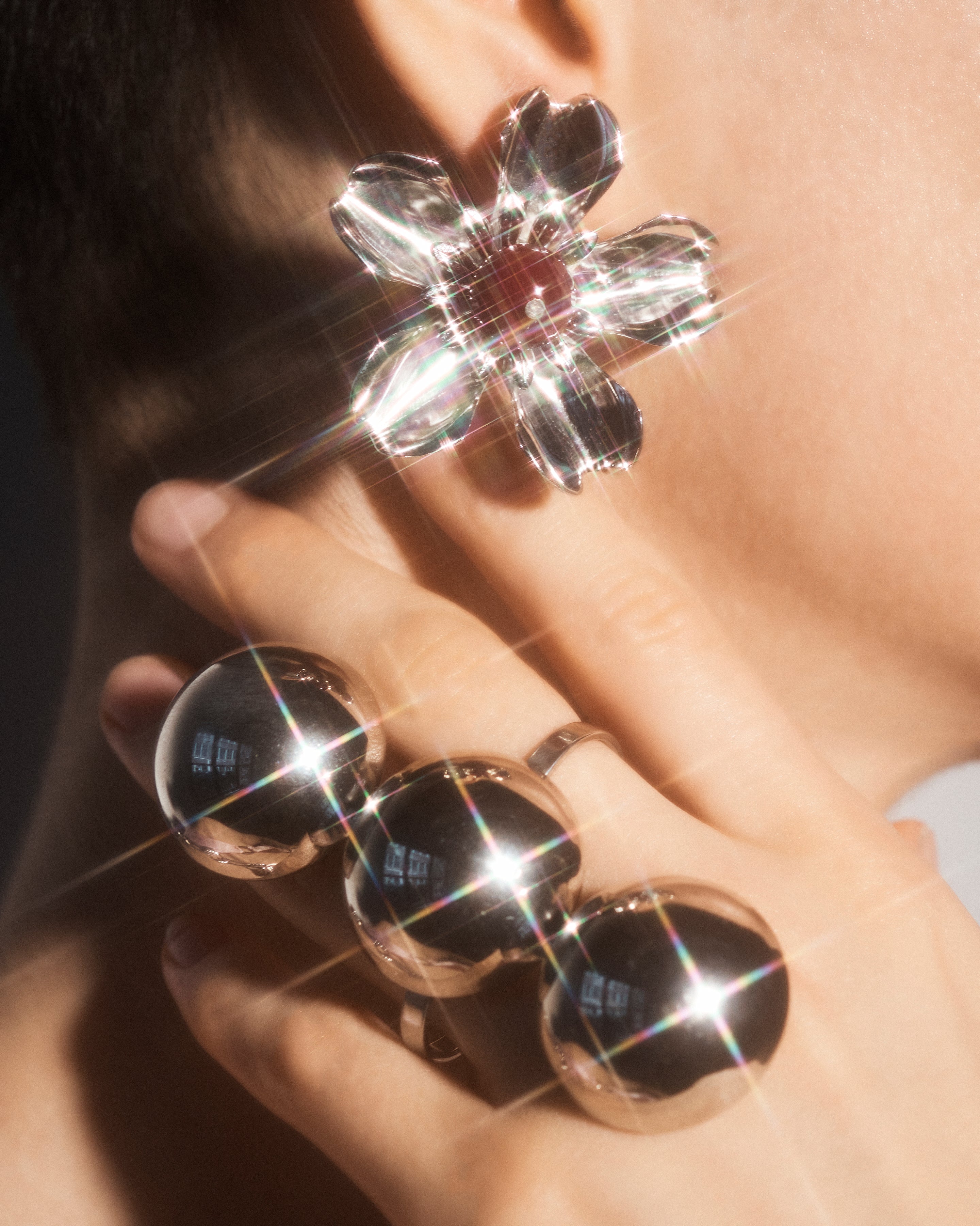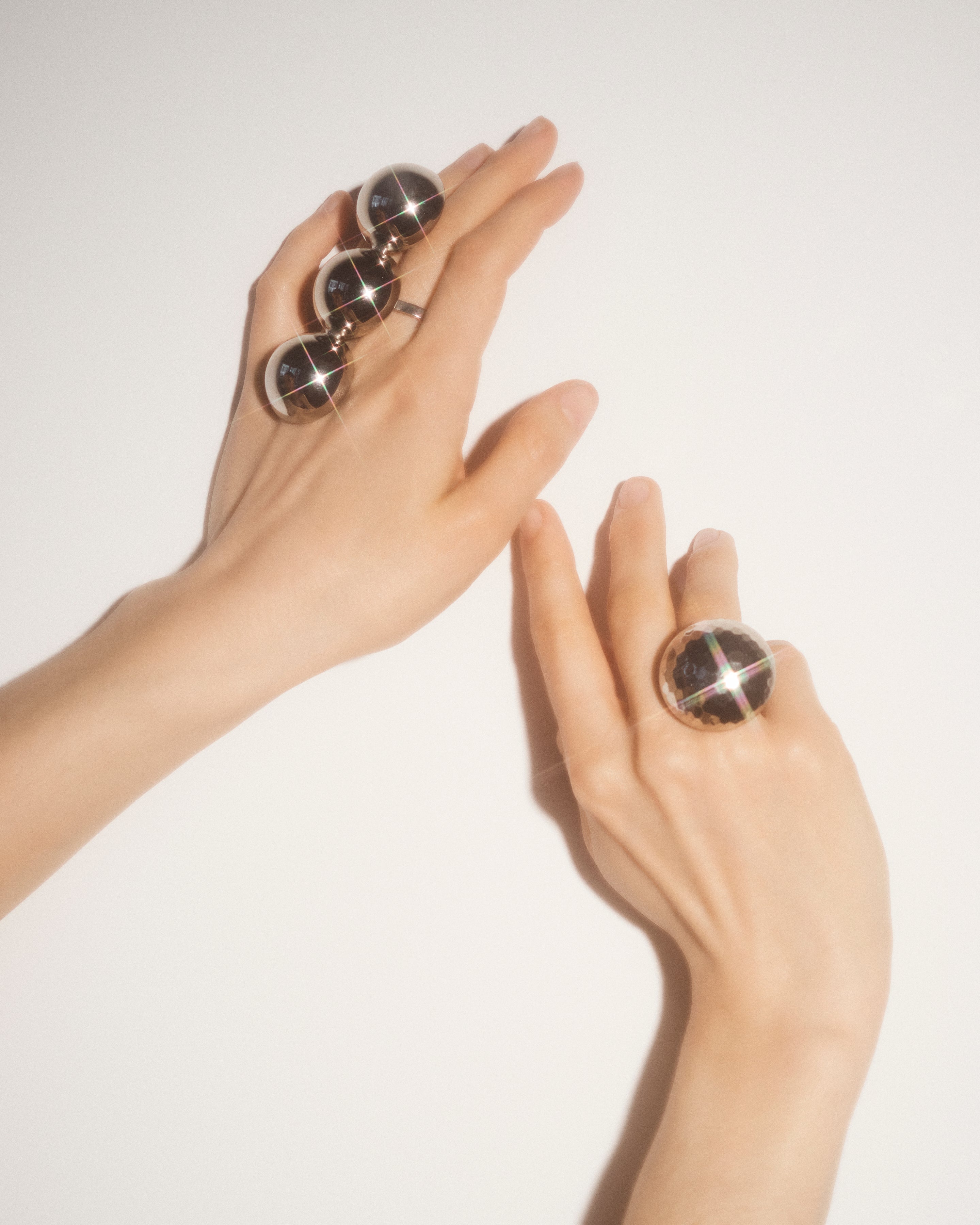 Triple silver plated hammer texture hand-polished half-sphere ring. Feel like a queen/king with this statement piece.