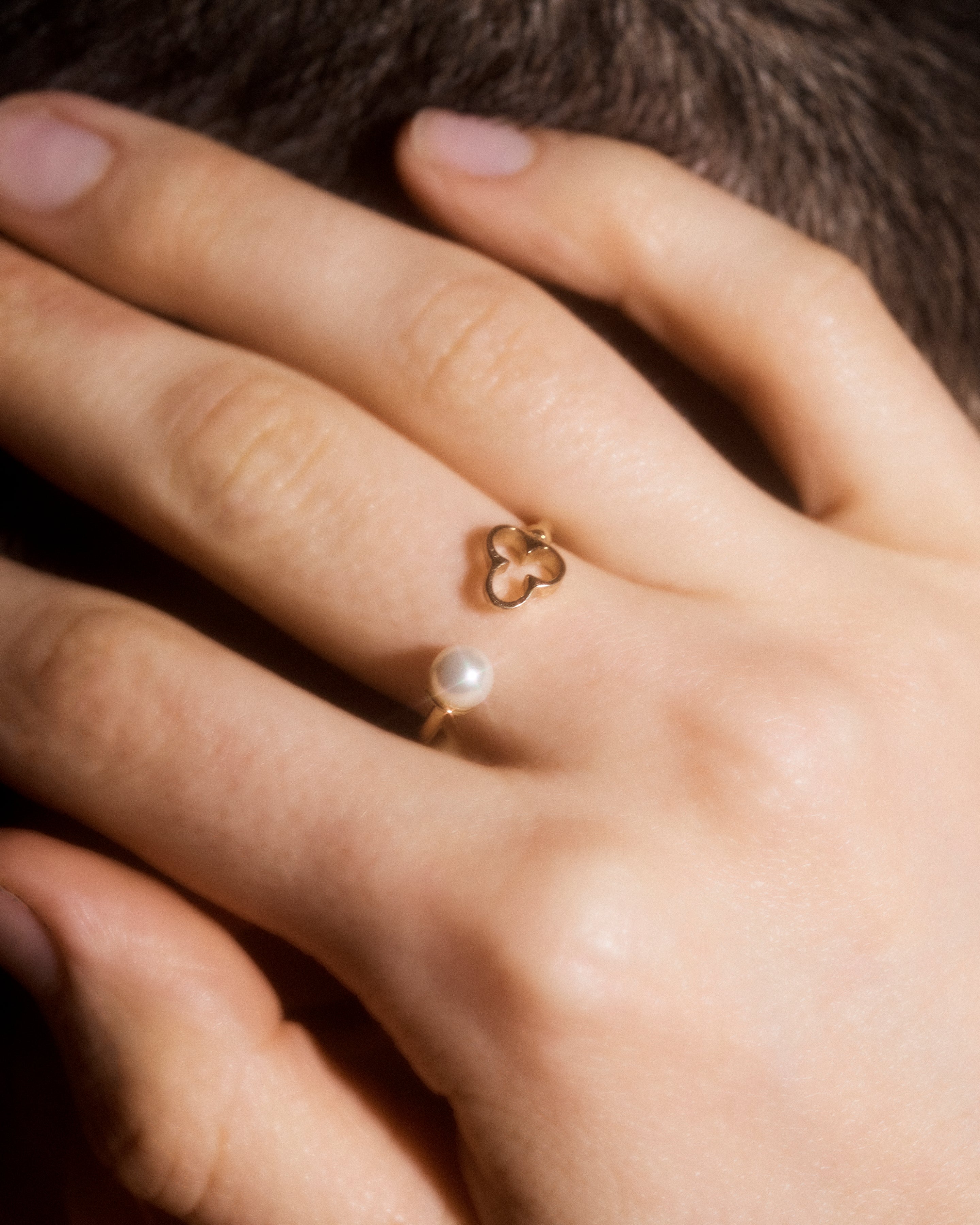 Faith, hope and love are what this pearl and shamrock gold ring stand for.